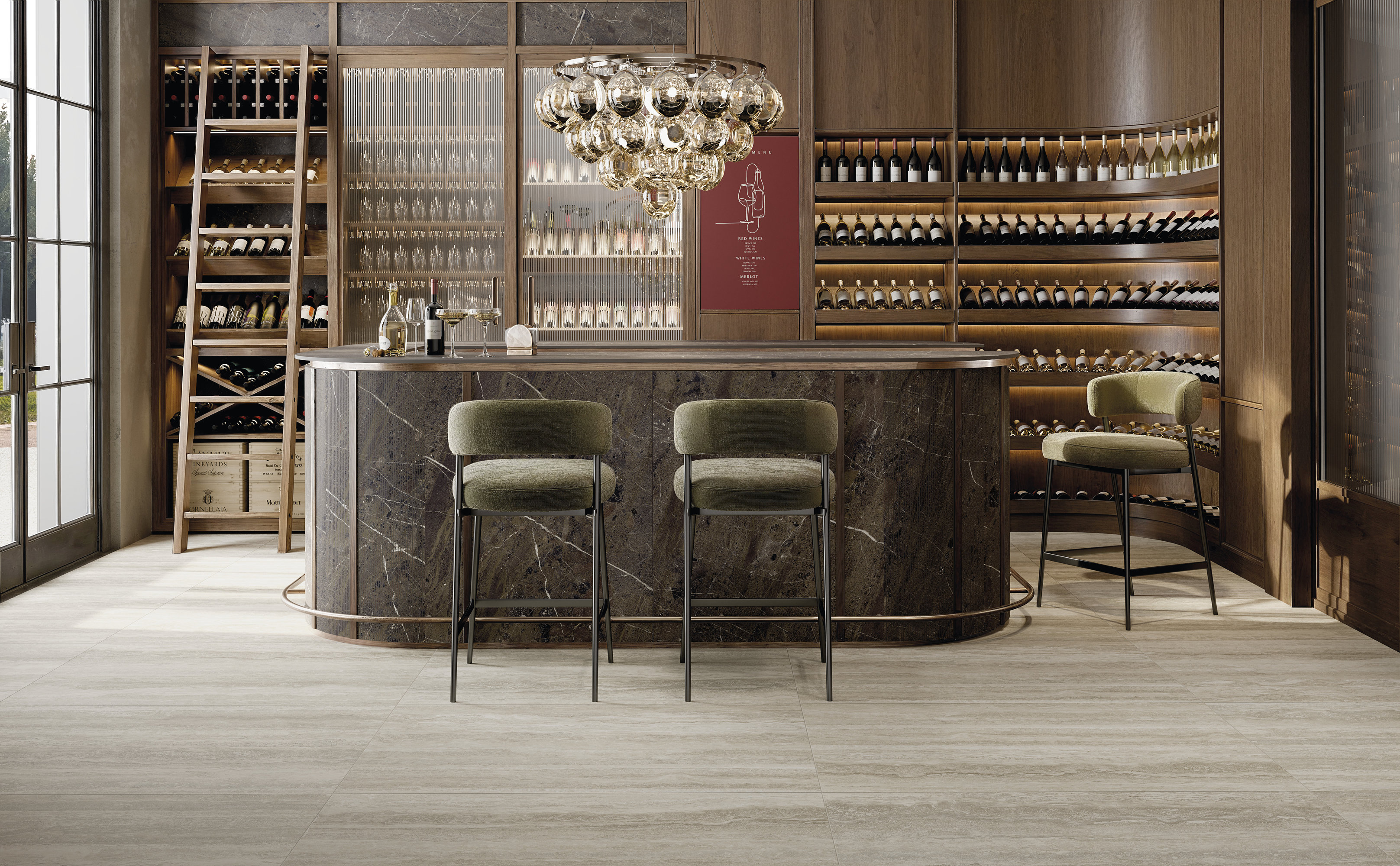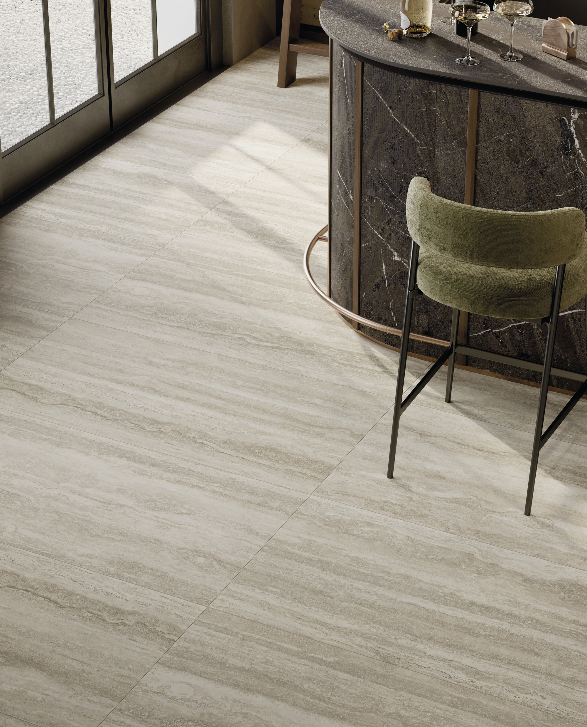 La superficie Travertino si distingue per le venature orizzontali leggere, che evocano paesaggi modellati dallo scorrere del tempo. La palette di toni caldi e neutri – dal beige al crema, dall’avorio ai grigi più soffusi – infonde un senso di equilibrio naturale e avvolgente, capace di trasformare ogni spazio in un ambiente elegante e accogliente. Un materiale che custodisce la memoria della tradizione e la restituisce in una veste attuale e contemporanea.